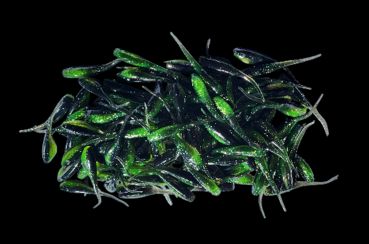 Shad Fry, Minnow Fry 2" length - Green/Midnight Flash (Green/Black w/gold & silver glitter)