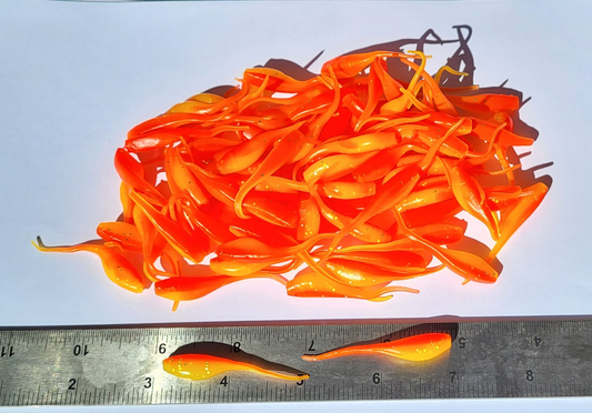 Shad Fry, Minnow Fry 2" length - Lake Sunrise (light/dark orange w/silver glitter)