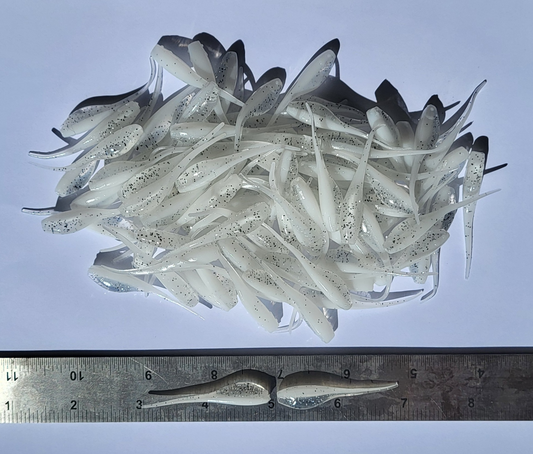 Shad Fry, Minnow Fry 2" length - Ice/Vanilla Pepper Flash (Clear/Pearl w/black & silver glitter)