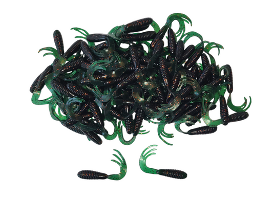 Triple Tail Tri-Tip Black Green Flash Color 2 inch 100 Pack Curl Tail Grubs
