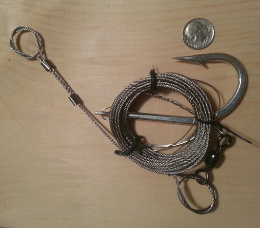 Shark Rig Heavy Duty Cable, Wire, Swivel and 12/0 HEAVYDUTY SHARP HOOK, 350 lb Miniumum cable weight