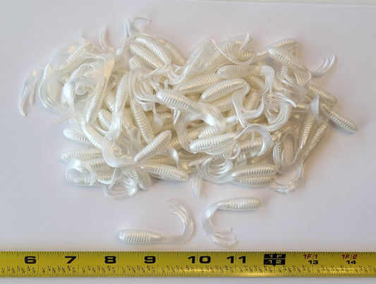 Triple Tail Tri-Tip Pearl White Color 2 inch 100 Pack Curl Tail Grubs