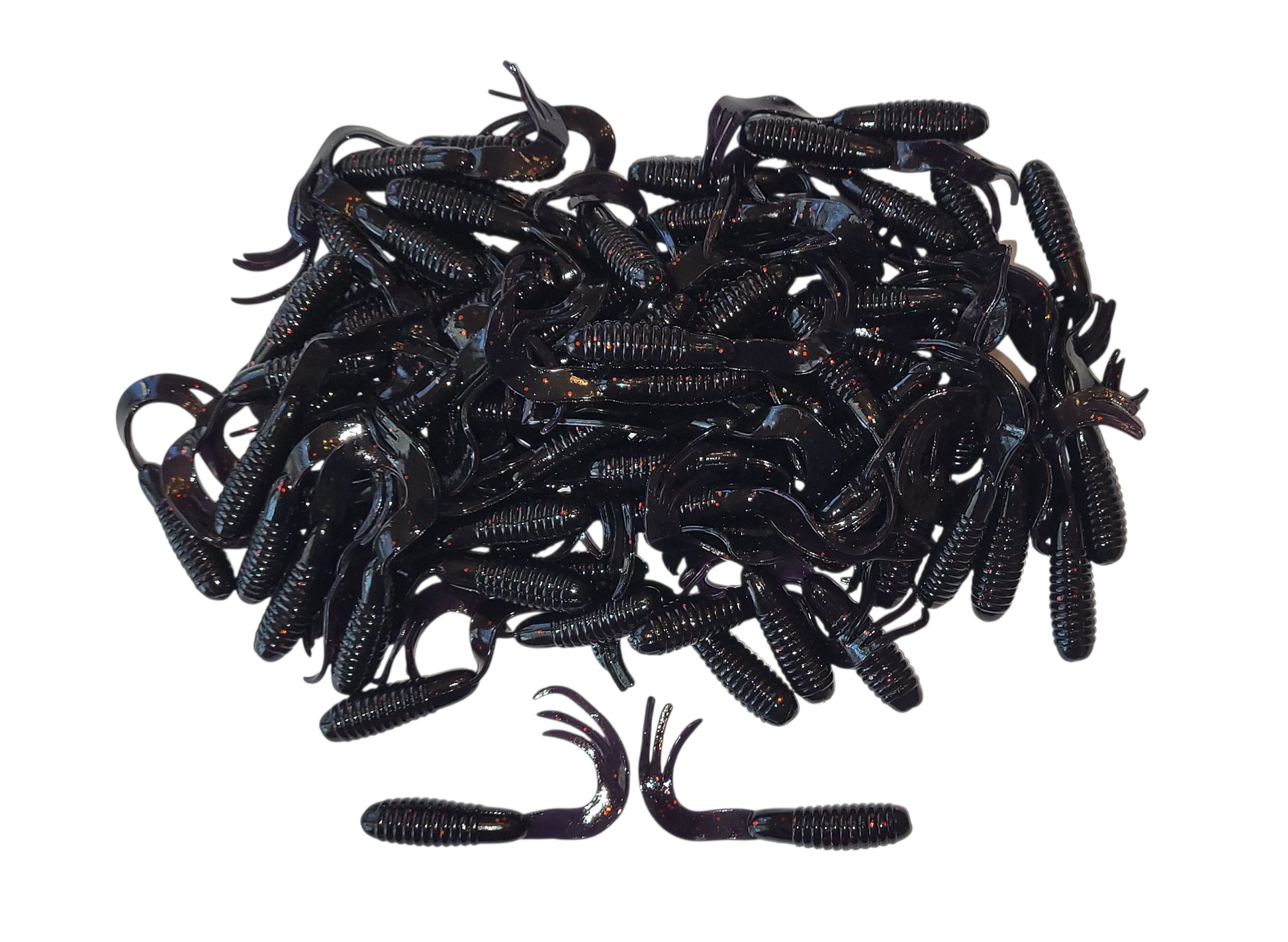 Triple Tail Tri-Tip Smoke Black Red Flash Color 2 inch 100 Pack Curl Tail Grubs
