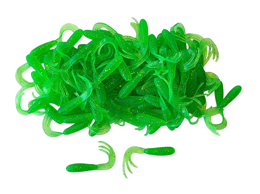 Triple Tail Tri-Tip Green Flash Color 2 inch 100 Pack Curl Tail Grubs