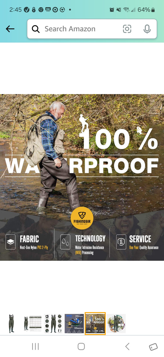 Chest Waders, FishingSir, Never Used, Mens size 8/Womens 10, includes Cellphone Case and Patch Kit